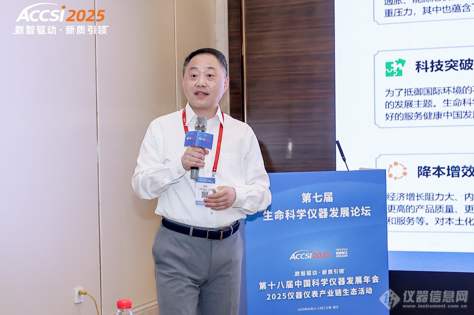 2025 年 5 月 12 日,第十八届中国科学仪器发展年会(ACCSI 2025)在上海松江富悦大酒店盛大启幕。这场行业盛会吸引了超 1800 位重磅嘉宾齐聚一堂,这中间还包括政府领导、院士专家、仪器厂商高层、检验测试的机构负责人及投资人等,规模创下历史上最新的记录。作为年会重要论坛之一,第七届生命科学仪器发展论坛于 5 月 13 日上午如期举行。论坛上,